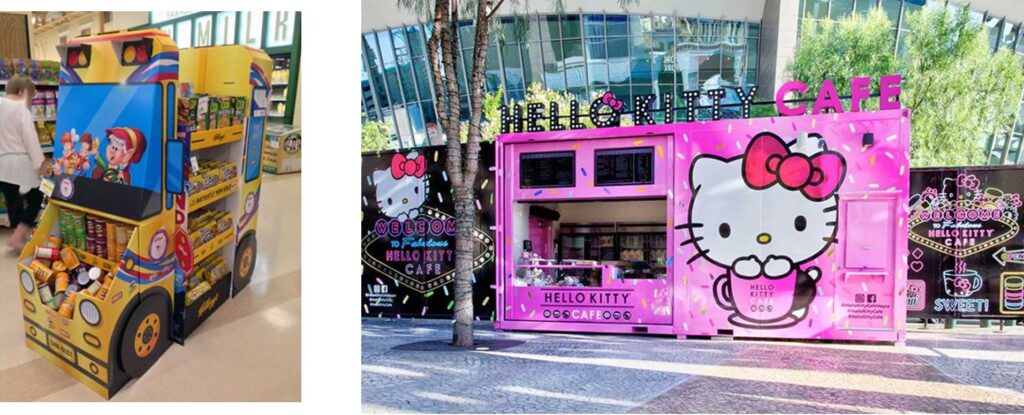 Today these large 3-D displays, Pop Ups, Store within a Store concepts all offer consumers a “location-based entertainment” experience and sweep them away in the theme and wonderment of the moment filled with alluring products. Experiential marketing is not just another buzz word it is here to stay!